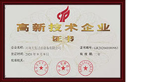 2020年9月9日——河南大張過濾設備有限公司榮獲“高新技術企業”證書